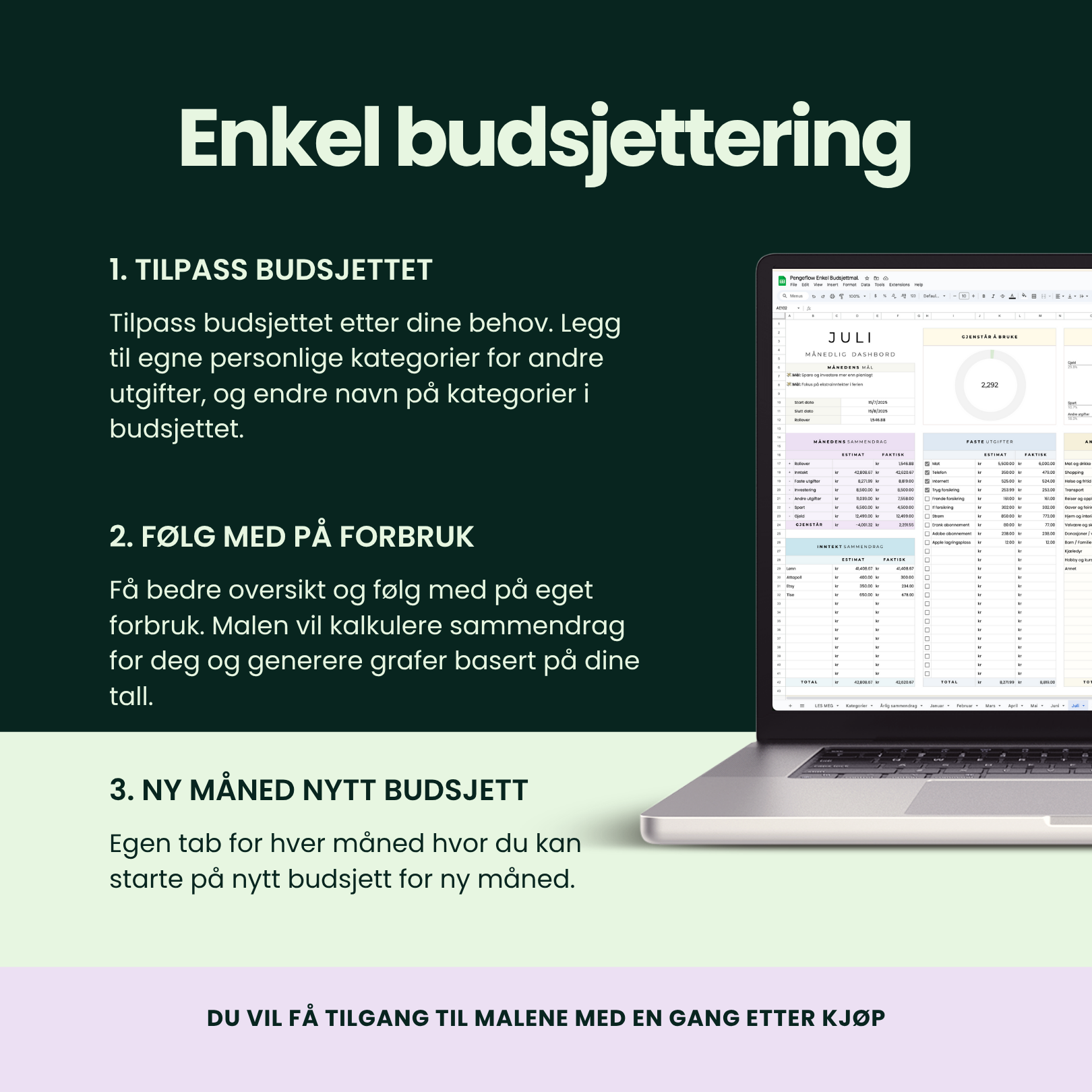 Enkel og intuitiv mal laget for deg som ikke er økonom. Passer perfekt i en travel hverdag uten komplisert oppsett.